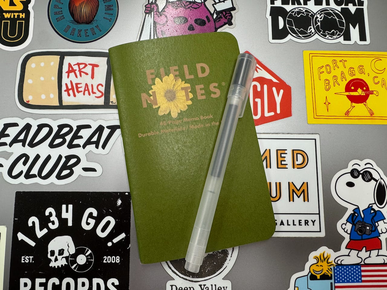 During the day, I carry a small Field Notes notebook. It fits in my pocket. It gets bent. When something catches me, a line, a question, a feeling, I write it down. No sorting. No labeling. I just decide it’s worth stopping for.